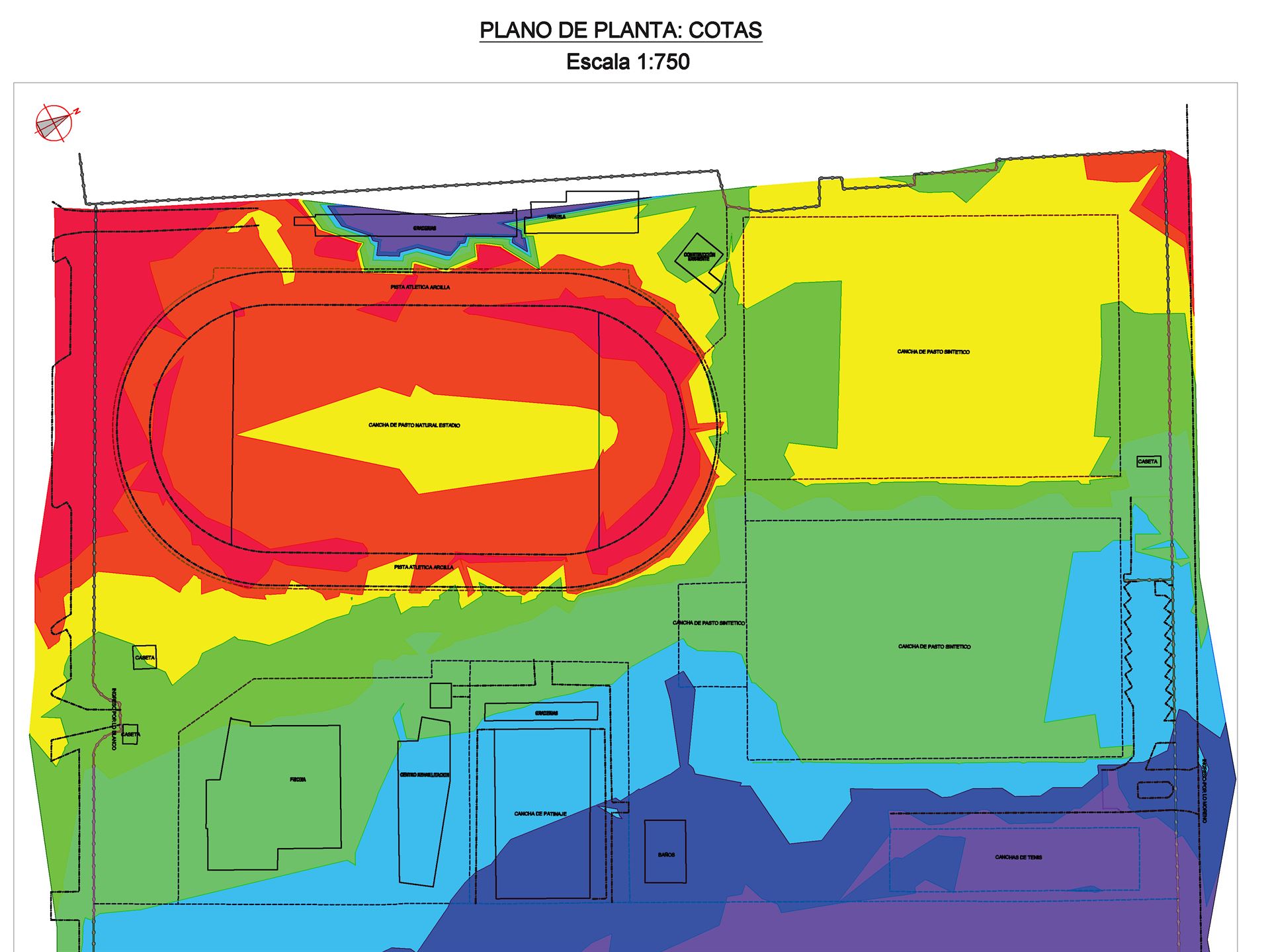 Se entregan planos con información de cotas de elevación y curvas de nivel, junto con un trazado de los deslindes y elementos de interés dentro del terreno.