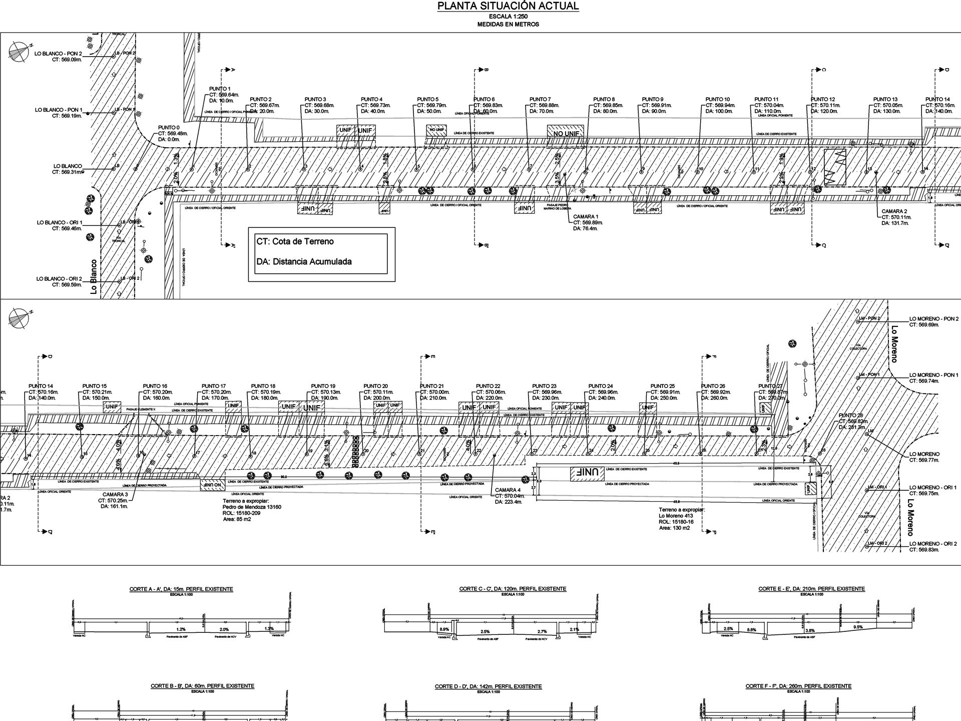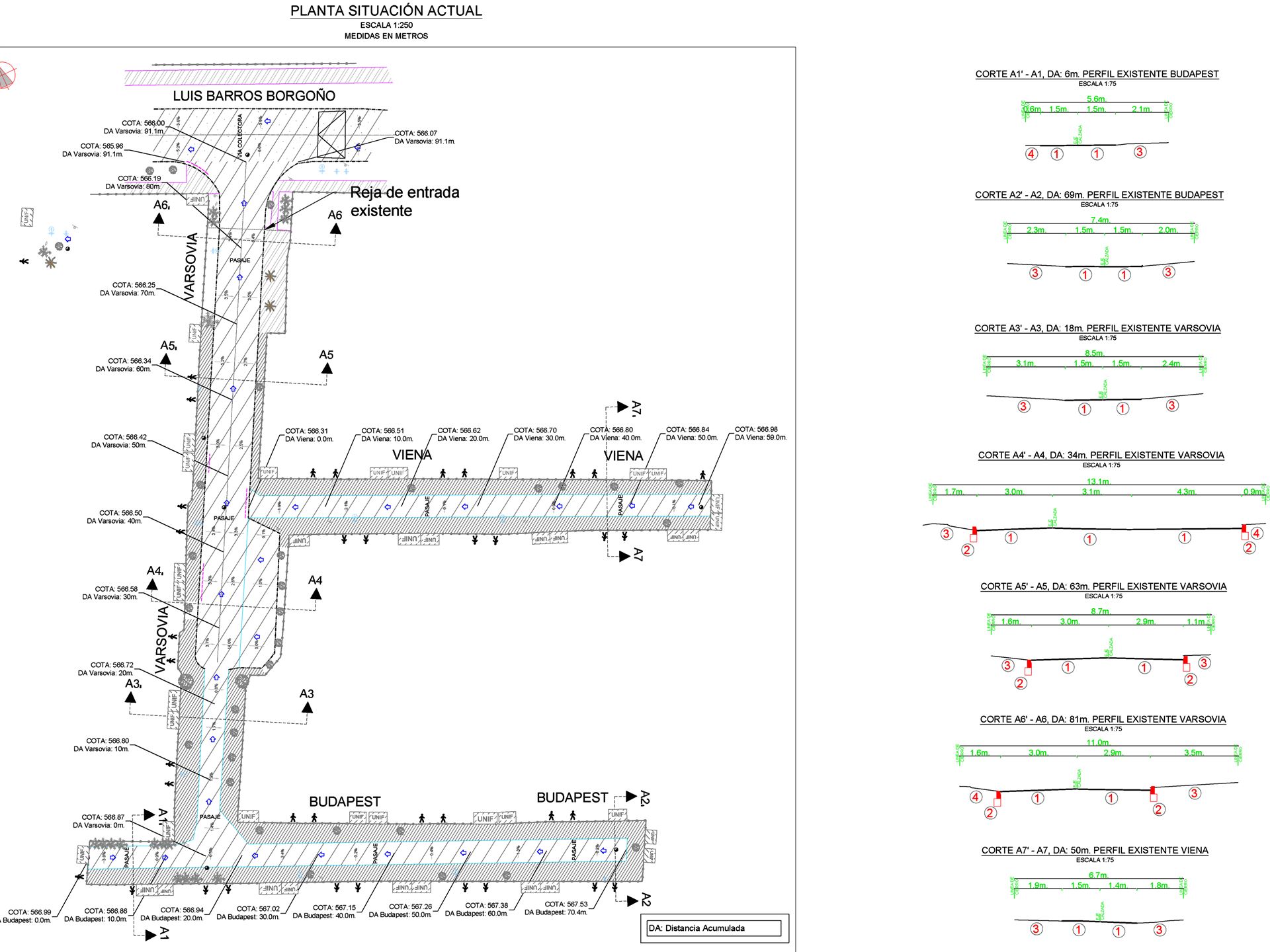 Si su proyecto es de levantamiento urbano para proyectos de pavimentación de veredas, calles u otros, se incluye plano de situación actual junto con elementos que componen la calzada (solera, eje de calle, líneas de cierro, veredas y otros).